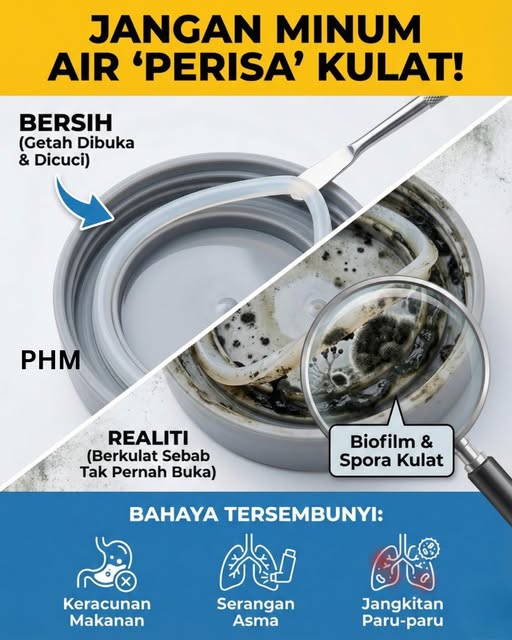 Walaupun botol anda jenama kayangan tahan sejuk 24 jam, kalau getah ni tak dicuci, air bersih anda automatik jadi air kotor.