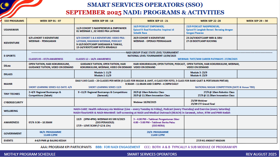 TAKWIM PERKHIDMATAN PINTAR NADI BULAN SEPTEMBER 2025