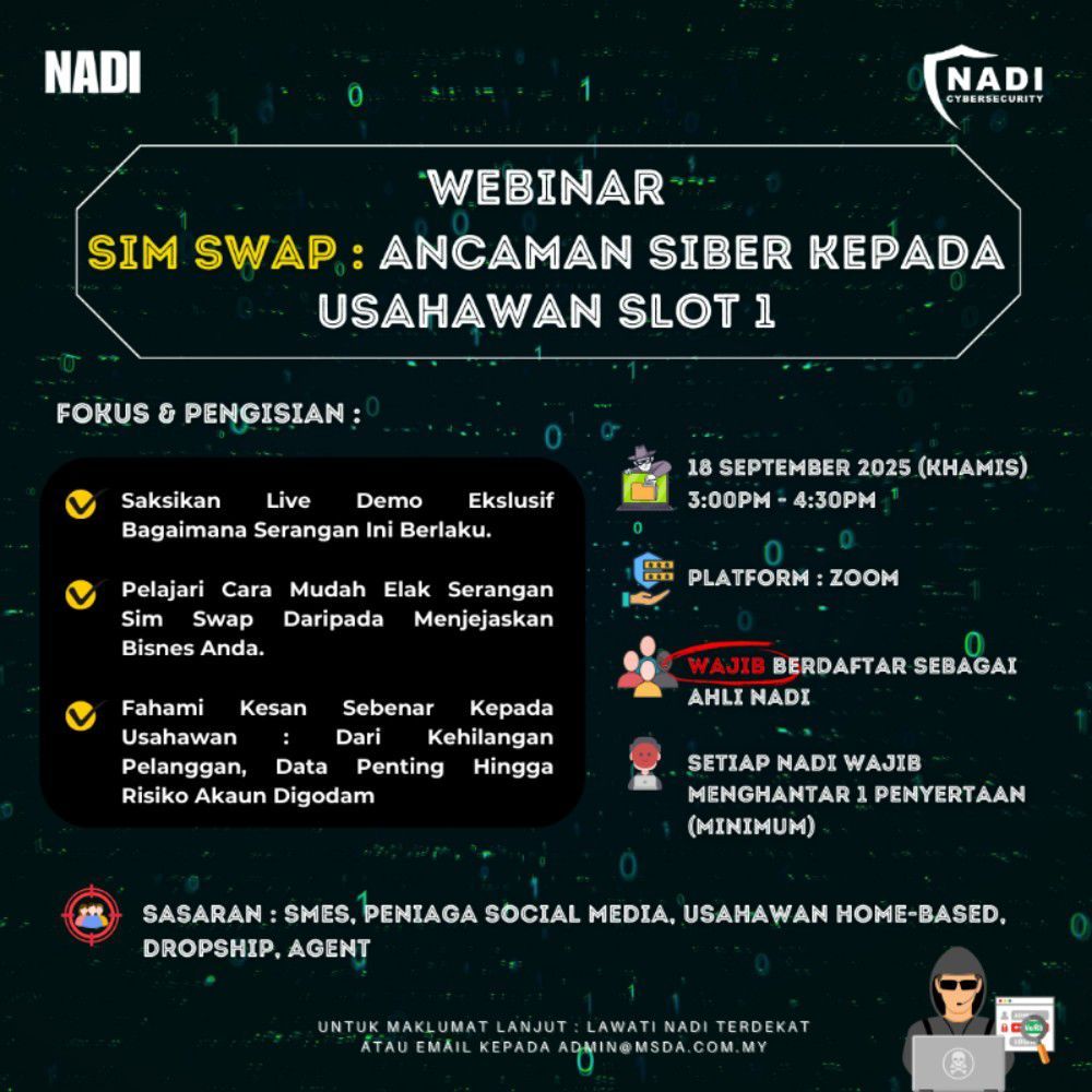 WEBINAR NADI x CYBERSECURITY: Β SIM SWAP: ANCAMAN SIBER KEPADA USAHAWAN SLOT 1